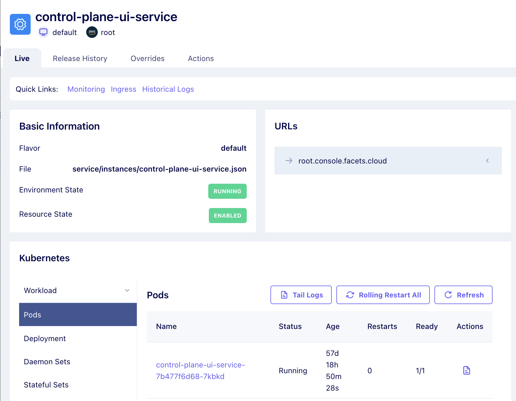 - Set of pre-defined workflows, including Kubernetes actions to restart, scale down, and scale up Deployments and StatefulSets will be available from 6th October (More workflows will be added from Facets end).